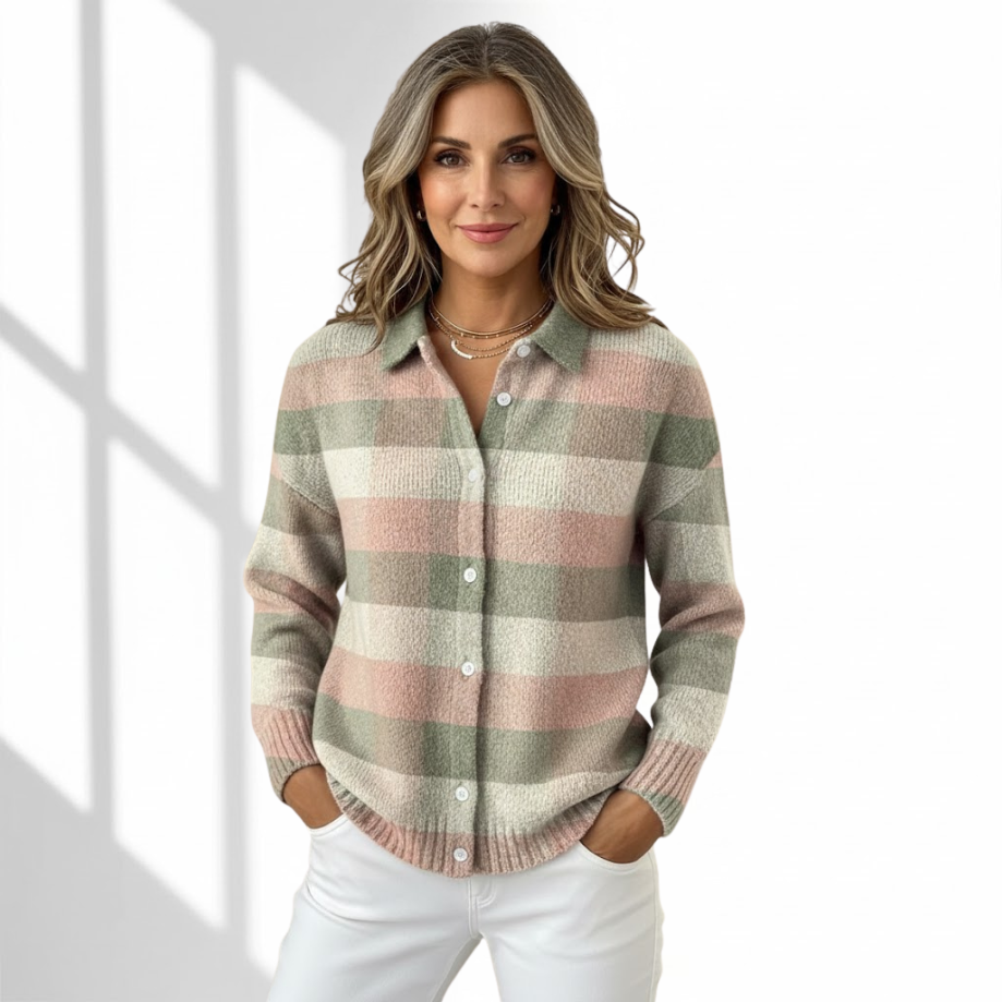 Ileana | Cardigan cămașă tricotat cu model în carouri