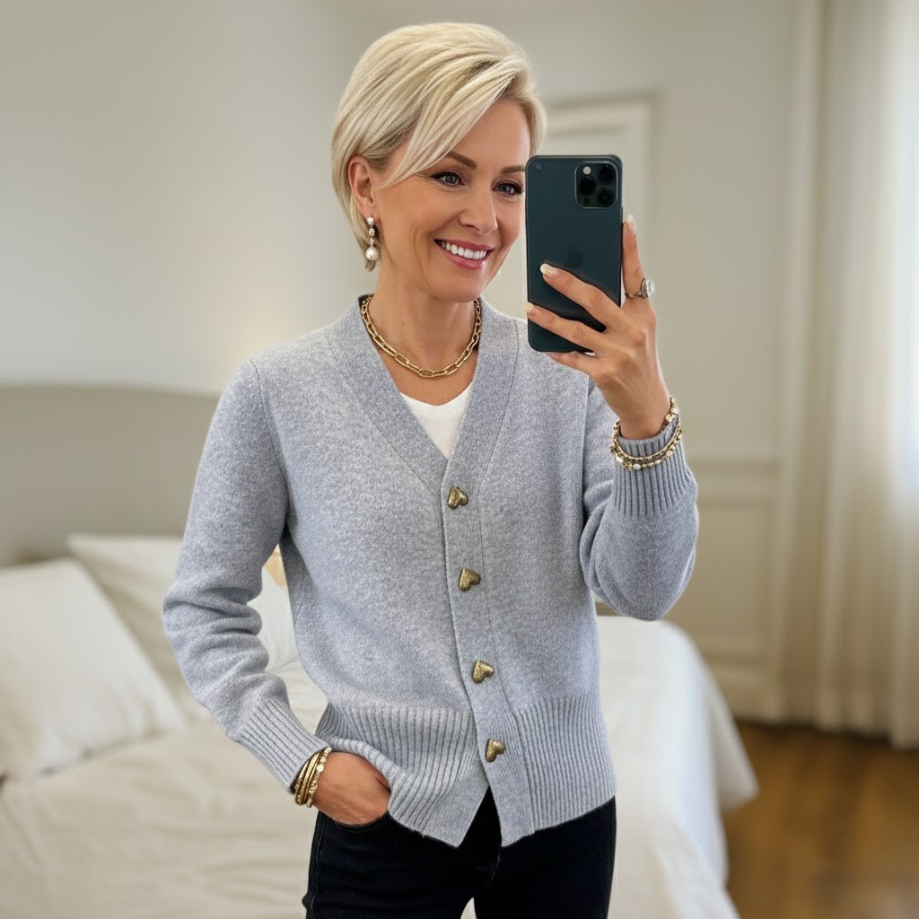 Delia | Cardigan Elegant cu Butoane în Formă de Inimă